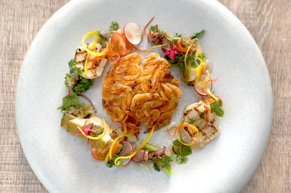 天然鮑とホタルイカの菜園仕立て 桜海老のクリスティアン