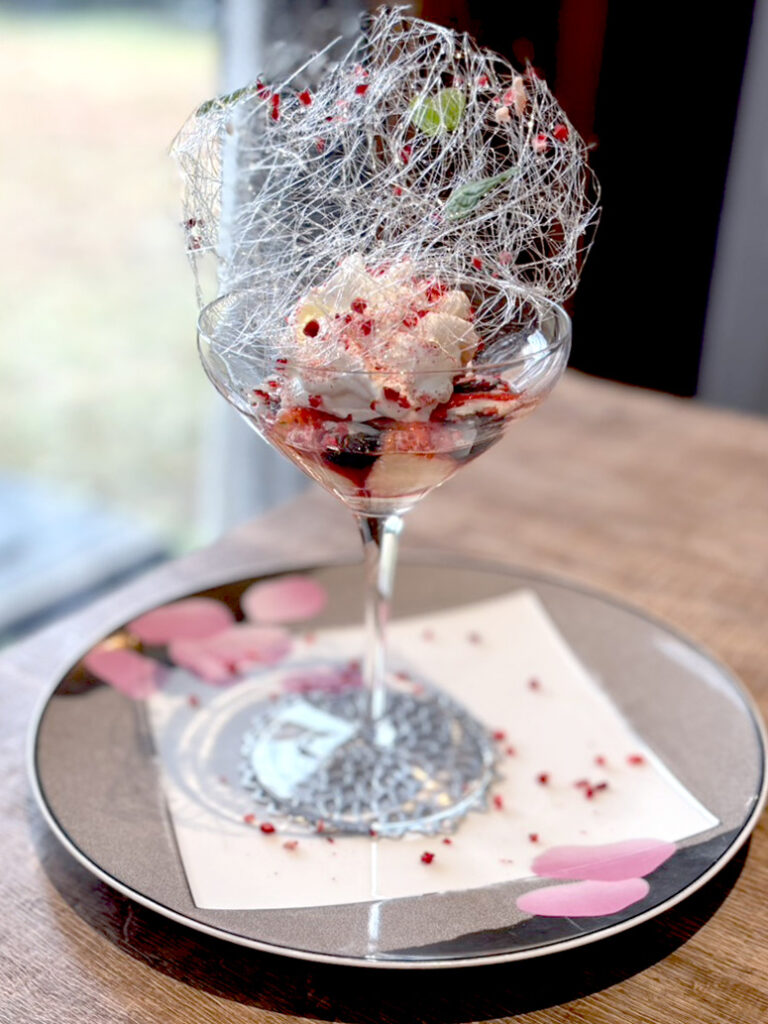 春苺とソーテルヌワインのゼリー寄せ 練乳のエスプーマと共に