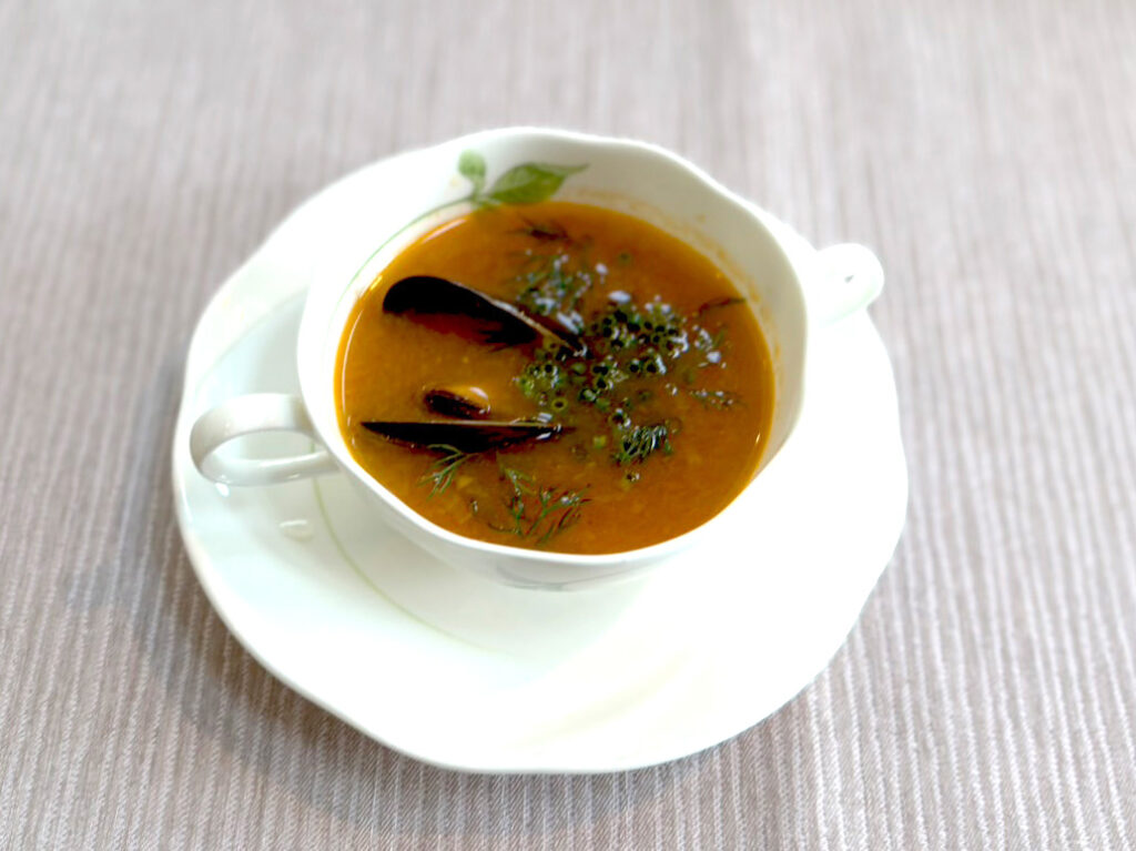 竹野の鮮魚から作るサフラン風味の魚介のスープ