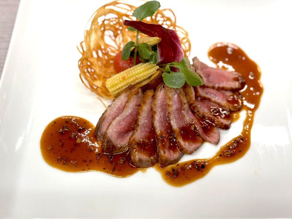 A、フランス産 仔鴨のエヴァンタイユ仕立て ポンムパニエとトリュフのソース