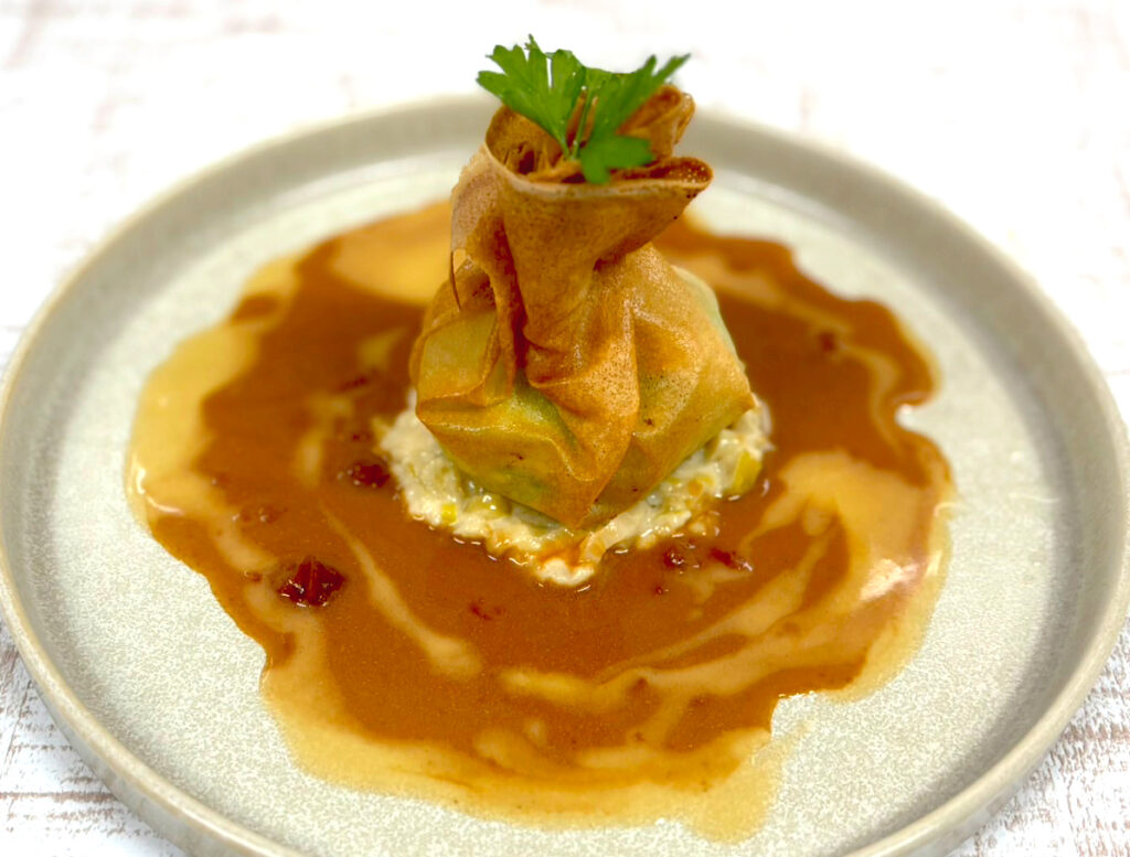 〈お魚料理〉本日入荷のお魚とホタテ貝柱のパータブリック包み ブルターニュオマール海老のソース