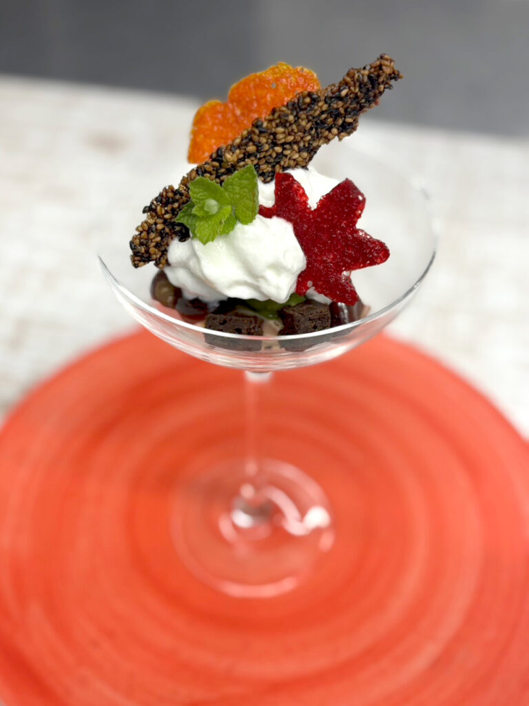 〈デザート〉丹波栗と抹茶のパフェ仕立て ウイスキーのエスプーマ