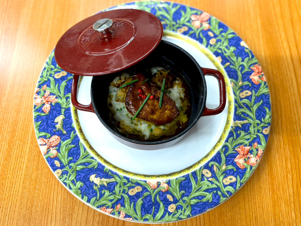 (前菜Ⅱ)フォアグラのソテーと牡蠣のムニエル パルミジャーノのリゾットとトリュフソース